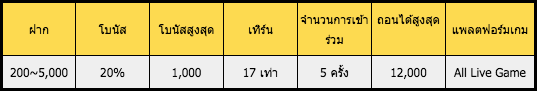 ⑶.การคำนวณเทิร์น All Live Game แพลตฟอร์มอื่นจะไม่นับรวมกับโปรโมชั่นนี้