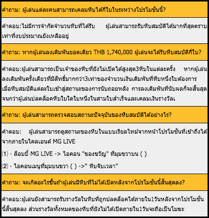 ⑹.เมื่อสิ้นสุดเวลาโปรโมชั่นแต่ละรอบเกมสะสมและจำนวนเงินเดิมพันจะถูกรีเซ็ตและจะไม่สะสม