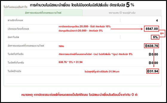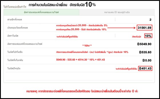 ⑶.การคำนวณโบนัสแนะนำเพื่อนจะหักโบนัสฟรีที่เพื่อนได้รับทั้งหมดจากเดือนนั้นๆออกก่อน